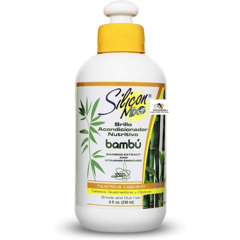 Die pflegende Pflege mit Bambusextrakt regeneriert und nährt das Haar. Ein Hauch von Silikon glättet die Haare und gibt ihnen ein glänzendes Ende. Die Bambu-Behandlung verhindert auch Haarriss und Gespaltene.